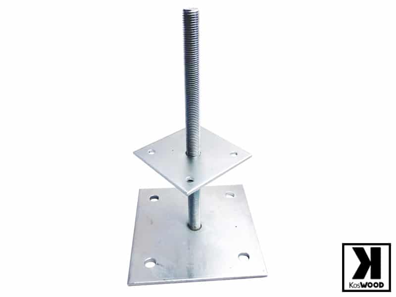 Okucie mocujące niewidoczne – mocowane od dołu słupa jest niewidoczne i dzięki temu poprawia walory estetyczne konstrukcji. Podpory wykonane ze stali cynkowanej lub nierdzewnej o grubych przekrojach blachy, zapewniają bardzo dużą stabilność. Dzięki regulowanej wysokości ułatwiają montaż.